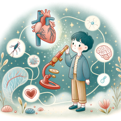 옛날 옛적, 한 조그만 마을에 민수라는 호기심 많은 소년이 살고 있었어요. 민수는 자연을 탐험하는 것을 좋아했지만, 어느 날 문득 자신의 몸이 어떻게 작동하는지 궁금해졌어요.