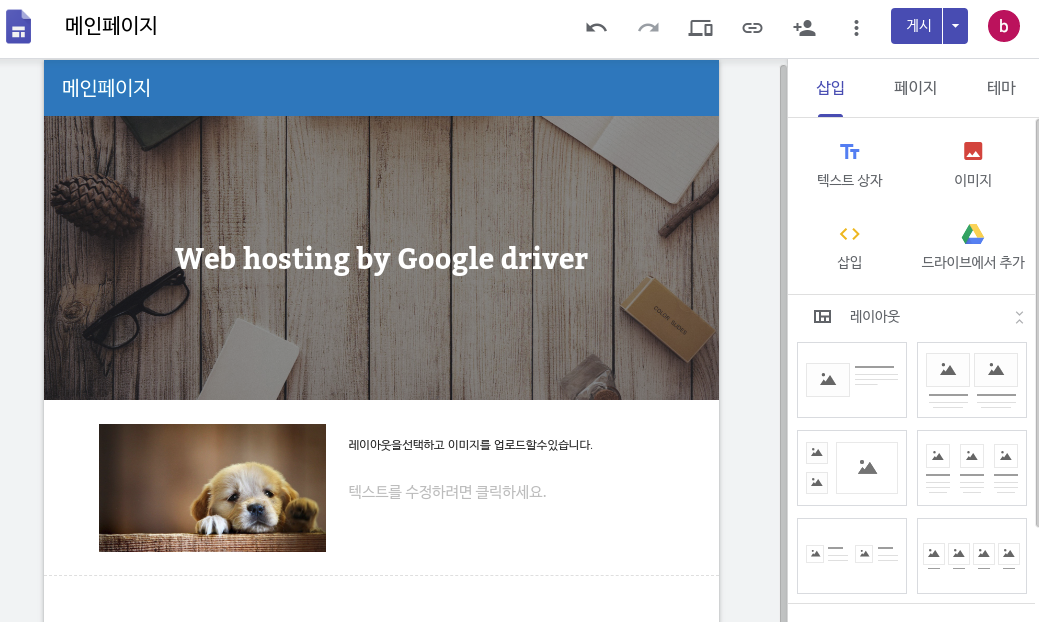7. 웹페이지가 완성되었으면 이제 인터넷 접속이 가능토록 할 시간, 우측 상단에 '게시' 버튼 클릭