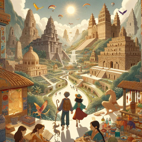 One day, while exploring the ancient library of the Incas, Minu and Yuna felt as if time had stopped among the books written in ancient scripts. They read books containing the knowledge and culture of the Incas, gaining a deep understanding and respect for this ancient civilization.