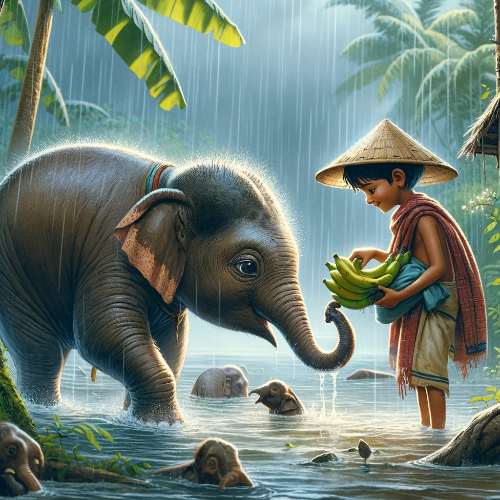 Once upon a time, in a small village in India, there lived a curious boy named Ari. Near the village, in the forest, one could often see wild animals, but Ari was particularly fascinated by elephants.