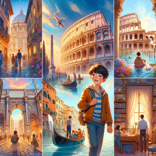 Upon arriving in Italy, Junho was initially bewildered but soon embraced the spirit of adventure. He began exploring the famous cities of Italy. Admiring the majestic Colosseum in Rome, he imagined the lives of ancient Romans, and experiencing magical moments riding a gondola on Venice's beautiful canals.