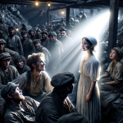 The daughter of a coal miner who worked in a coal mine helped her father every day with his difficult work. She was always covered in coal dust, but despite that, she helped her father as if she didn't find it difficult at all. The miners who worked with her always praised her kind heart.
