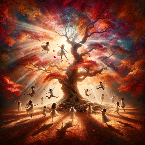 시간이 지나며 그 나무는 눈부시게 아름다운 단풍나무로 자라났습니다. 특히 가을이면 나무의 잎이 마치 아이들의 손가락처럼 보이는 모습으로 물들어, 마을 사람들 사이에서는 그 나무가 여성과 그녀의 아이들의 영혼이 함께 있는 곳이라고 여겨지게 되었습니다.
