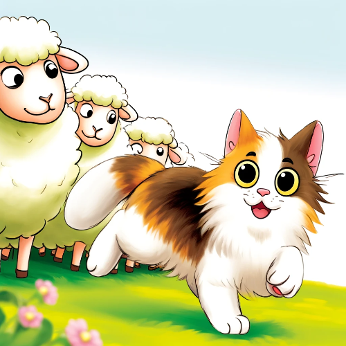루이의 첫 만남은 소심한 양 '모모'였습니다. 모모는 처음 보는 고양이 루이가 조금 무섭지만, 곧 친구가 됩니다. 모모는 루이에게 양들이 얼마나 훌륭한 도약을 할 수 있는지 보여주며, 루이도 모모를 따라 높은 풀밭 위로 도약해 보지만, 곧 쿵 하고 떨어집니다. 이 장면을 본 두 동물은 함께 웃으며 첫 번째 교훈을 배웁니다: 실패를 두려워하지 않고 다시 시도하는 용기.
