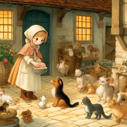 오래 전, 작은 마을에 버려진 강아지와 고양이들을 돌보아주는 따뜻한 마음을 가진 어린 소녀가 살고 있었습니다. 그녀의 이름은 릴리였습니다. 릴리는 매일 거리를 돌아다니며 먹을 것이 필요한 동물들에게 음식을 나눠주고, 상처받은 이들을 돌보았습니다. 동물들과의 깊은 우정 속에서 릴리는 자신도 모르게 자연과 동물들로부터 알 수 없는 힘을 얻게 되었습니다.