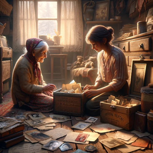 어느 날, 카라의 손녀인 레아가 오래된 상자를 발견했습니다. 상자 안에는 빛바랜 편지들, 사진, 그리고 여러 기념품들이 가득했습니다. 궁금증을 참지 못한 레아는 할머니에게 상자 속 이야기를 들려달라고 부탁했습니다.